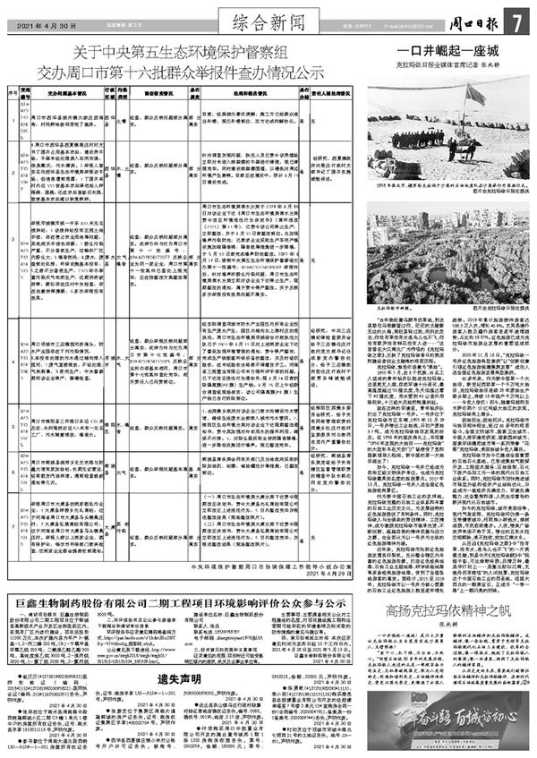 关于中央第五生态环境保护督察组 交办周口市第十六批群众举报件查办情况公示