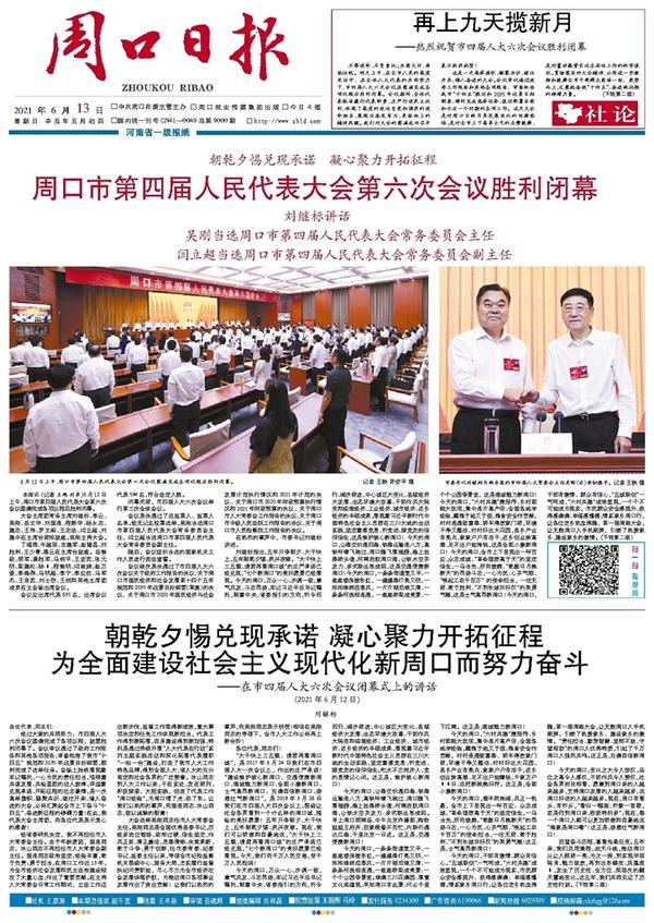 周口市第四届人民代表大会第六次会议胜利闭幕