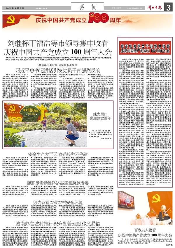 刘继标丁福浩等市领导集中收看庆祝中国共产党成立100周年大会