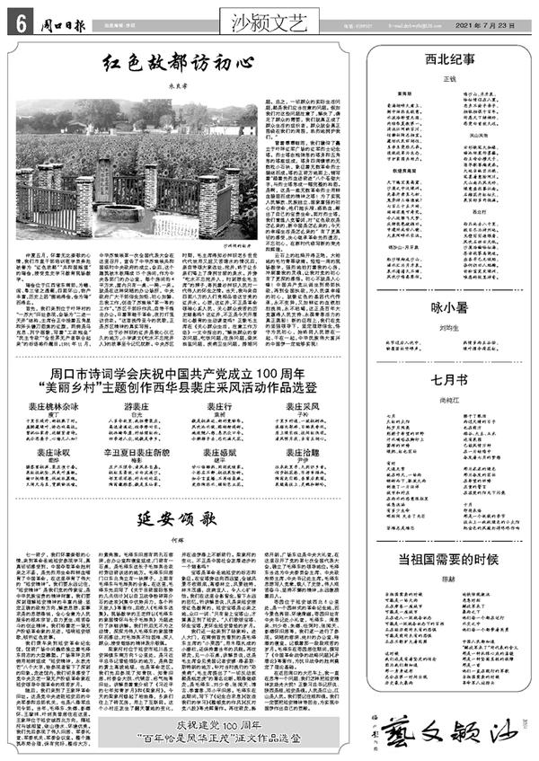 周口市诗词学会庆祝中国共产党成立100周年“美丽乡村”主题创作西华县裴庄采风活动作品选登