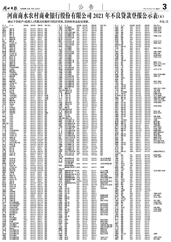 河南商水农村商业银行股份有限公司2021年不良贷款登报公示表(8)