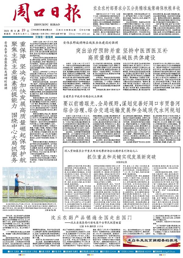 要以前瞻眼光、全局视野,谋划完善好周口市贾鲁河综合治理、综合交通运输发展和全域现代水网规划