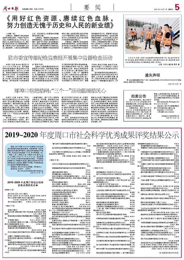 2019~2020年度周口市社会科学优秀成果评奖结果公示