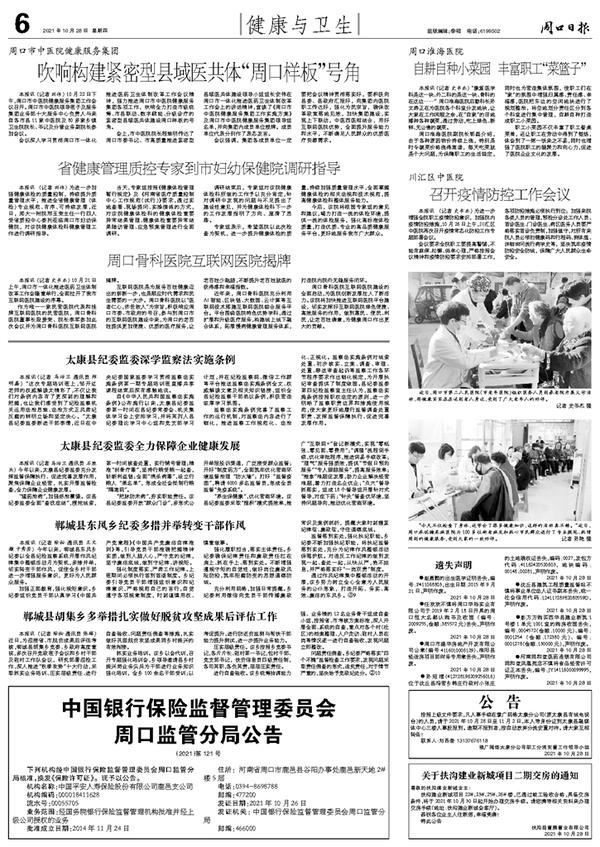 中国银行保险监督管理委员会周口监管分局公告