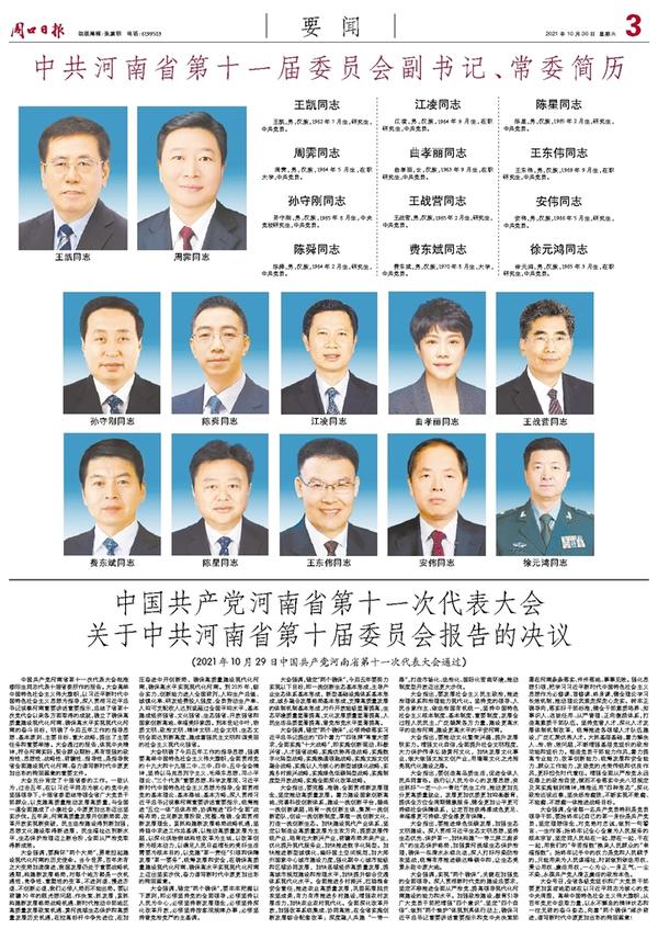 中共河南省第十一届委员会副书记、常委简历