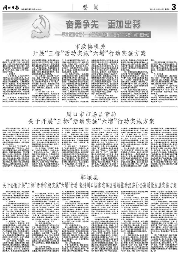 周口市市场监管局关于开展“三标”活动实施“六增”行动实施方案