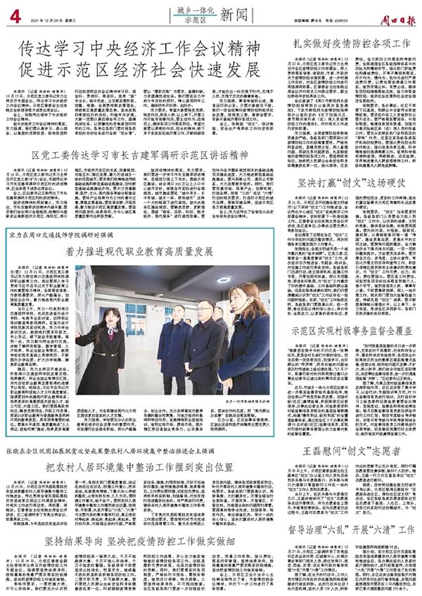 传达学习中央经济工作会议精神 促进示范区经济社会快速发展