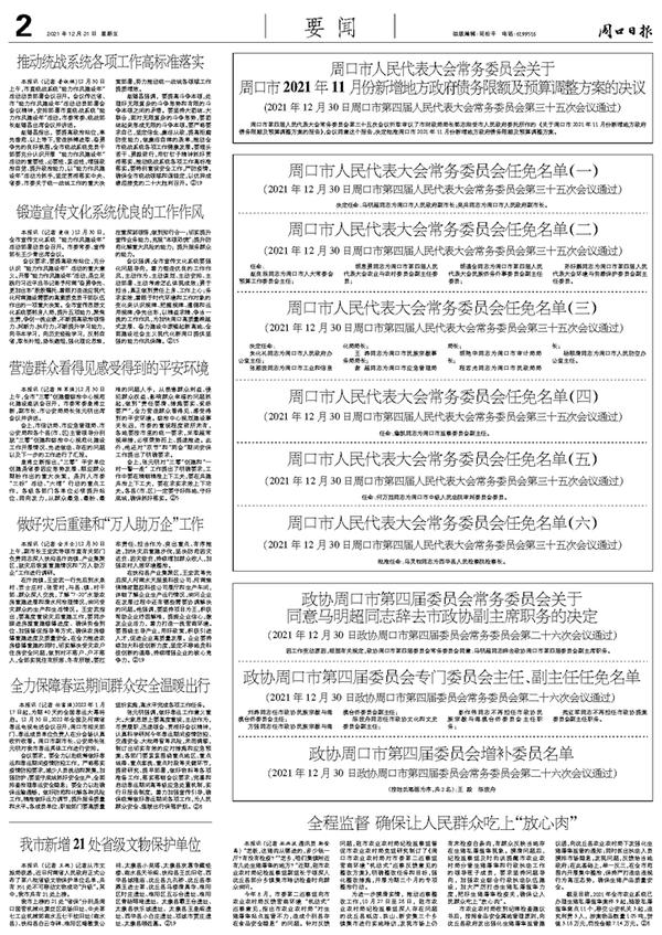 周口市人民代表大会常务委员会任免名单(二)