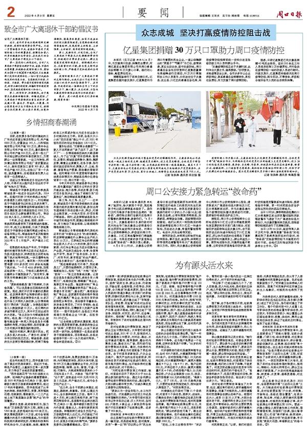 亿星集团捐赠30万只口罩助力周口疫情防控