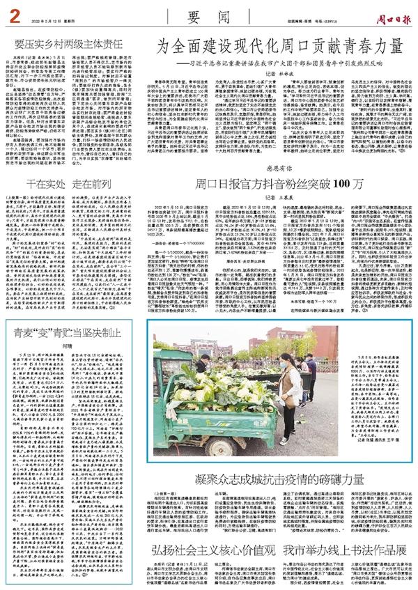 周口日报官方抖音粉丝突破100万