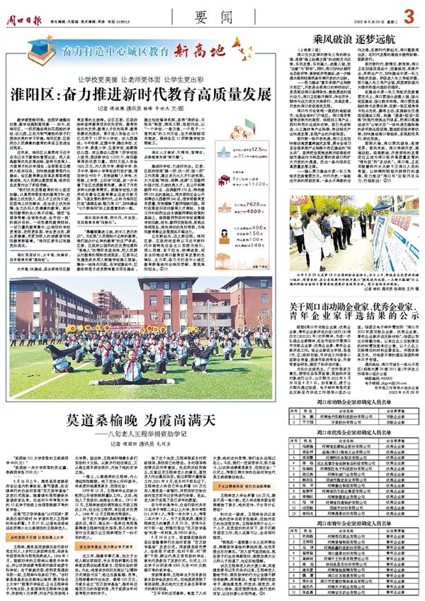 关于周口市功勋企业家、优秀企业家、青年企业家评选结果的公示