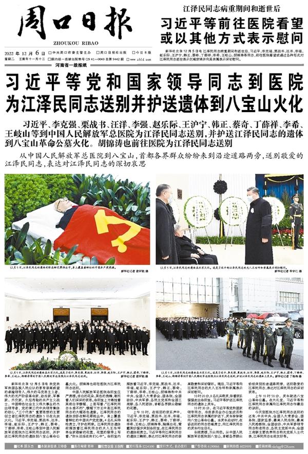 习近平等党和国家领导同志到医院为江泽民同志送别并护送遗体到八宝山火化