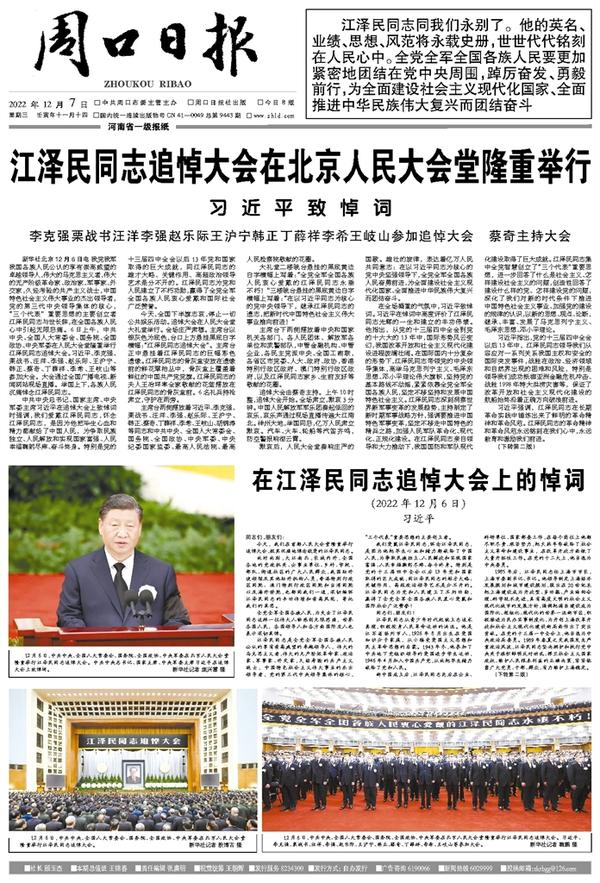 江泽民同志追悼大会在北京人民大会堂隆重举行
