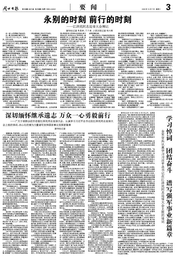 学习悼词 团结奋斗 谱写强军事业新篇章