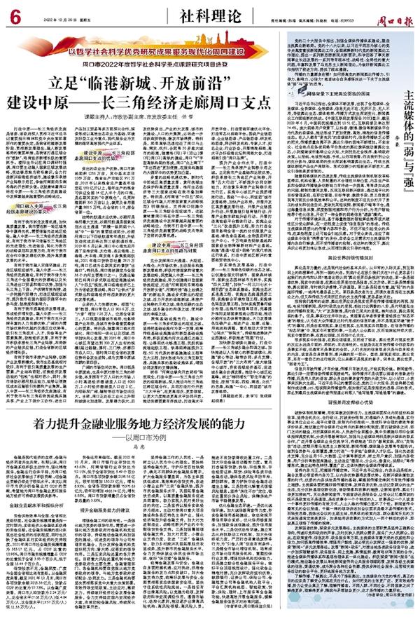 立足“临港新城、开放前沿” 建设中原——长三角经济走廊周口支点