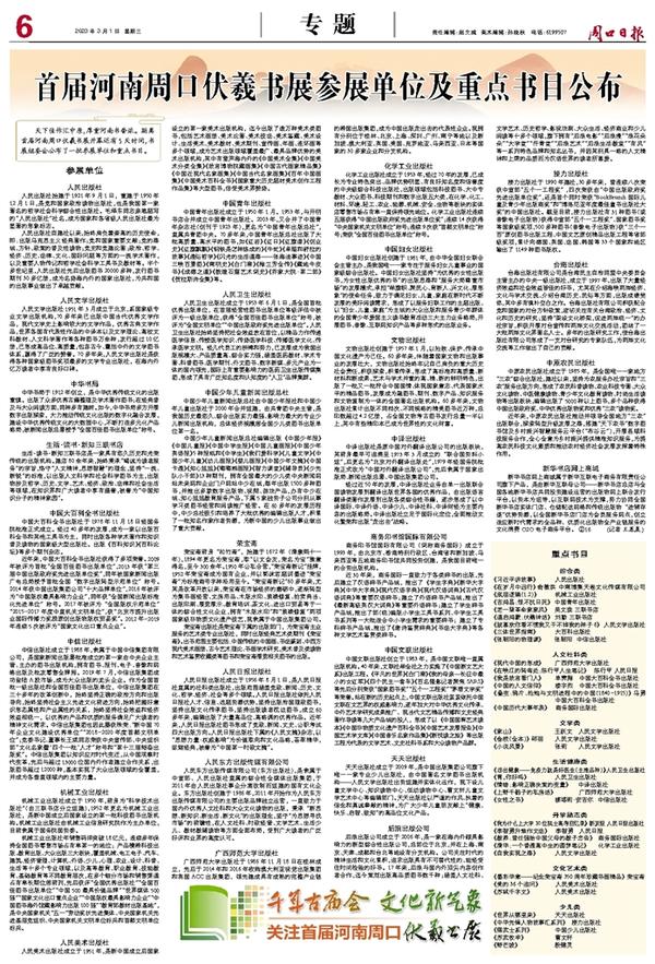 首届河南周口伏羲书展参展单位及重点书目公布