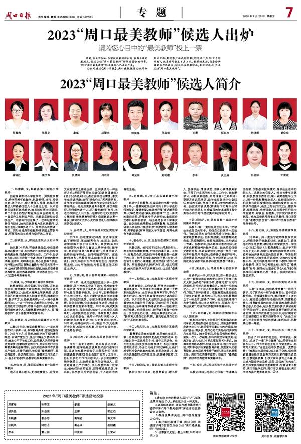 2023“周口最美教师”候选人出炉