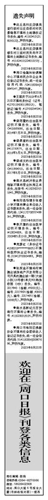 欢迎在《周口日报》刊登各类信息
