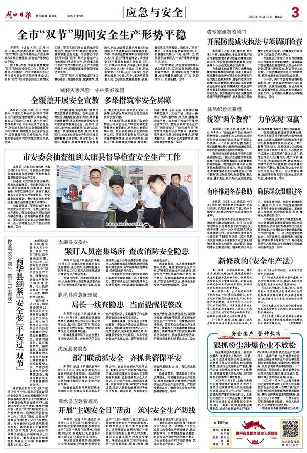 西华县绷紧“安全弦”平安过“双节”