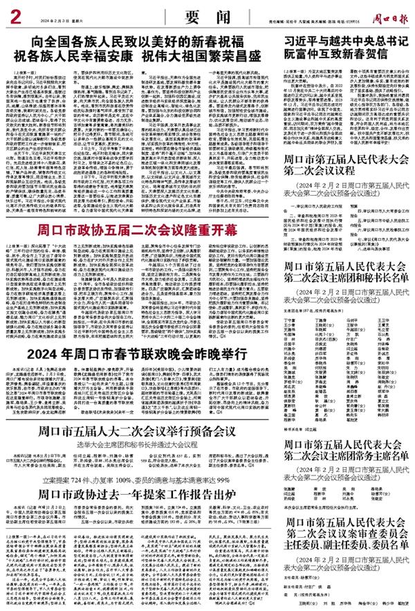 周口市第五届人民代表大会 第二次会议主席团和秘书长名单