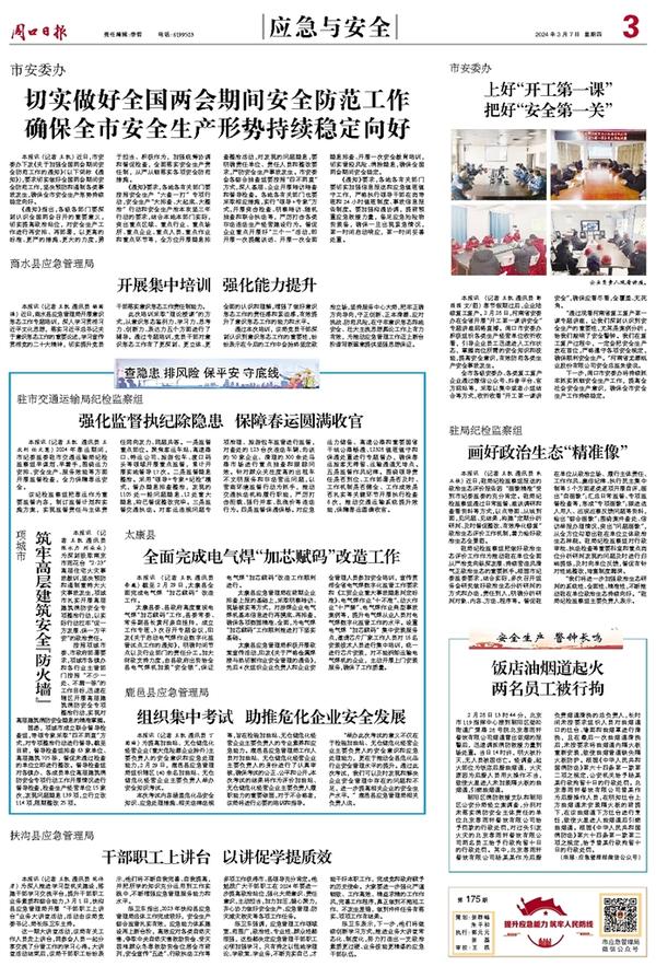 切实做好全国两会期间安全防范工作 确保全市安全生产形势持续稳定向好