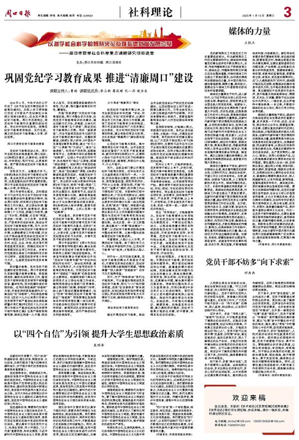 巩固党纪学习教育成果 推进“清廉周口”建设