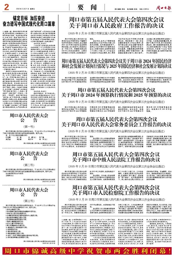 周口市第五届人民代表大会第四次会议关于周口市2024年预算执行情况和2025年预算的决议
