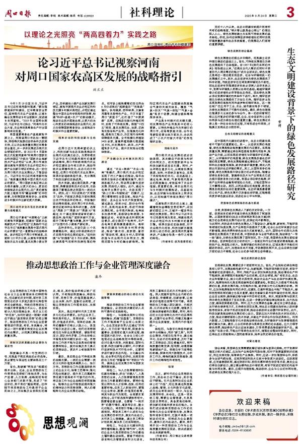 论习近平总书记视察河南对周口国家农高区发展的战略指引(以理论之光照亮“两高四着力”实践之路)