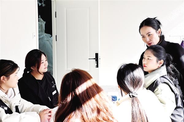 走进彭莉娟的婚纱集合店,最引人注目的不是华丽的婚纱,而是一群阳光的姑娘。22岁的孟娟笑容可掬。这位当年高考失利的姑娘,经朋友介绍跟着彭莉娟学习化妆,用她自己的话说:“我手笨得像脚,连画眉毛都能画成‘毛毛虫’。”