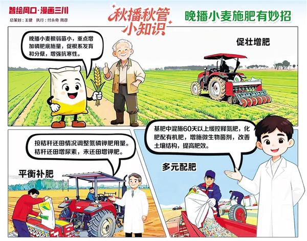 今年土壤养分流失大,晚播小麦根弱苗小。专家建议,底肥增磷肥促根壮苗,根据秸秆还田情况调整氮磷钾肥用量,秸秆还田增尿素,未还田增钾肥。还可混施缓控释氮肥,搭配有机肥和微生物菌剂,改善土壤结构,提高肥效,保障小麦生长。记者 付永奇 周彦 文/图