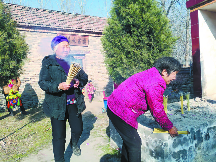 让记者感叹的是,一路走来,尽管所见文化遗存匮乏,但群众对盘古女娲的信仰却无处不在,那份浓浓的情感朴素而炽热。不管是在木岗寺,还是盘古井、盘古墓,记者都见到了焚香叩拜的人们。一路上,还有不少村民热情地给记者讲盘古寨和盘古女娲的故事。盘古墓旁,62岁的村民魏素梅说,这高七八米、绕一圈得五六十步的盘古墓,其实也就十几年的时间,都是四面八方来祭拜的人一捧土一捧土添起来的。“为啥?因为群众感激盘古老祖。”魏素梅说,“俺的愿望就是在这能建个盘古大殿,让更多的人知道盘古老祖的功德,也让远路来的香客有个歇脚的地方。”