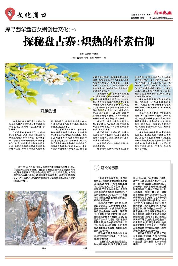盘古与女娲的故事,丰富着我们的想像,或者比我们的想像还要绵长。在这个高速奔跑的时代,随着采访组一起行走吧,行走在西华这片创世圣地,抚平时间的皱纹,回望一下自己的来处,认识一下自己,给灵魂找一个归宿。