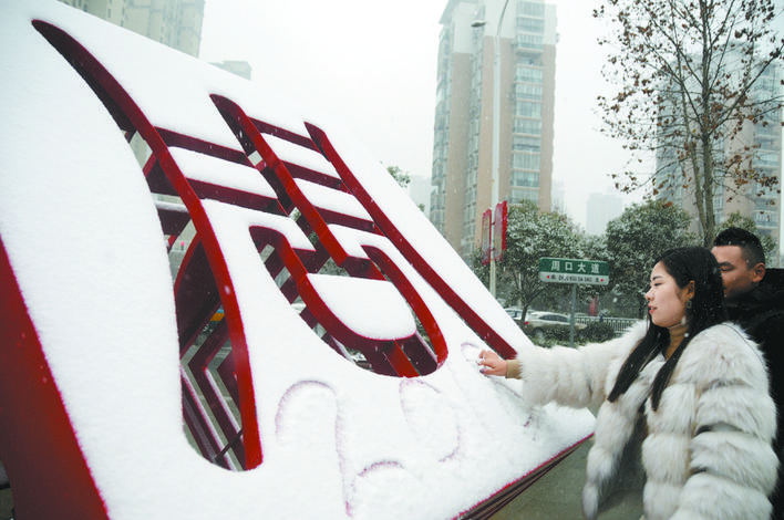1月3日,一场大雪如期而至,周口银装素裹,分外妖娆。从早上开始,纷纷扬扬飘起雪花,截至下午3时,地面积雪1厘米左右,气温-1℃。这是今年周口第一场雪。