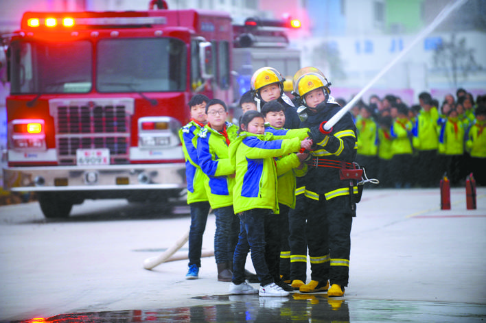 1月2日,消防战士带领小学生们体验如何“灭火”。 当日,安徽省亳州市公安消防支队芍花路中队的官兵走进风华桐乡路小学,开展消防安全知识讲座、消防技能展示等活动,让师生了解消防知识,提高安全意识。 新华社发