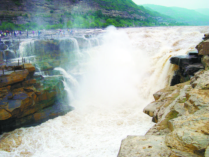 特色景点:壶口瀑布是中国第二大瀑布,世界最大的黄色瀑布。黄河奔流至壶口一带,两岸石壁峭立,河口收束,狭如壶口,故名壶口瀑布。瀑布上游黄河水面宽300米,在不到500米长距离内,被压缩到20~30米的宽度。河水从20多米高的陡崖上倾注而泻,形成“千里黄河一壶收”的奇景。伴随瀑布出现八大奇观:水底冒烟、旱地行船、霓虹戏水、山飞海立、晴空洒雨、旱天惊雷、冰峰倒挂、十里龙槽。