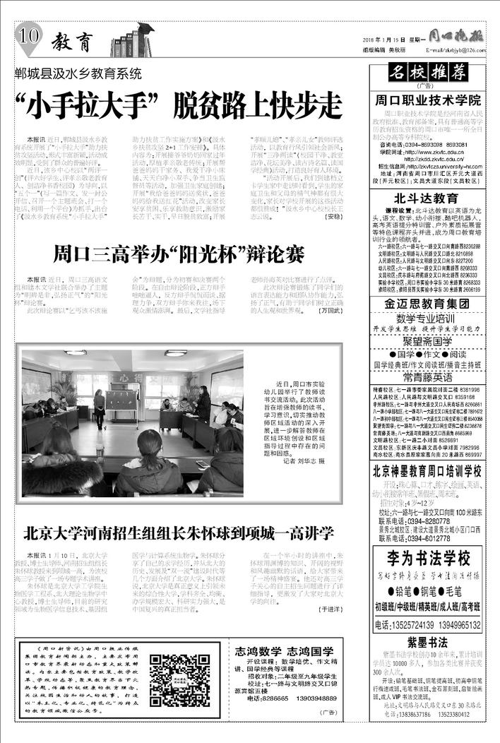 本报讯 近日,周口三高语文组和建木文学社联合举办了主题为“明辨是非,弘扬正气”的“阳光杯”辩论赛。