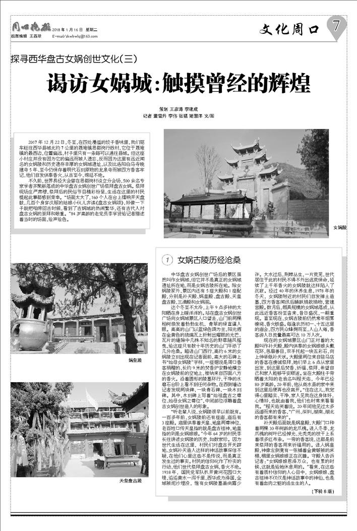沧海桑田,转眼千年。女娲城曾经的繁华早已湮灭在历史长河中,我们只能从只言片语的记载里窥其一角。现在,她静静地躺在这片古老而神秘的土地下沉睡。沉睡的她并未被遗忘,在此生活的人们一代代将她和盘古女娲创世的故事流传下来,虔诚信仰,用心膜拜。无论是女娲城还是盘古女娲,思都岗的村民都是由具象认识的。在他们的脑海中,千百年来,女娲城的古墙旧瓦一直矗立在那里,伸手就可以触摸到;在他们心中,盘古女娲有血有肉,累了会歇,困了会睡,与他们血脉相通。