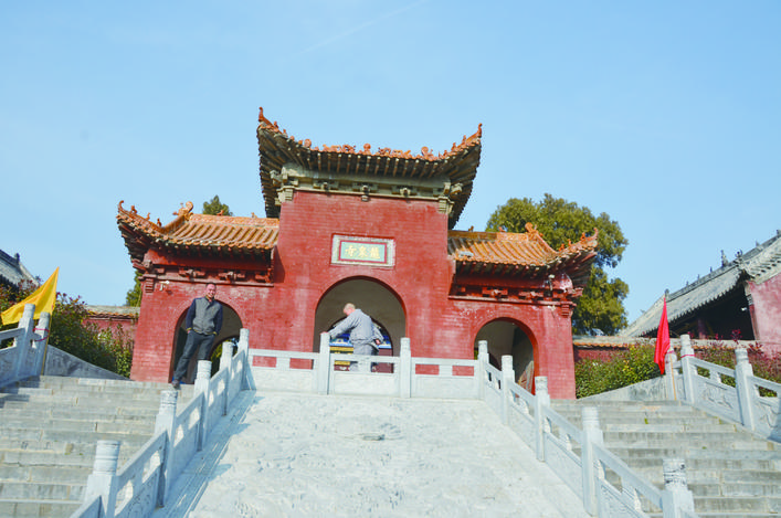 跨过龙泉湖上两道景观桥,绕过观音像,顺台阶拾阶而上就到了山门前。抬头仰望,天蓝色石匾上“龙泉寺”3个金色大字熠熠生辉。此山门和白马寺山门风格颇为相似,似乎也印证了李长往的说法。据说,龙泉寺最早建于东汉年间。永平十一年,佛教高僧迦叶摩腾和竺法兰在京都洛阳选中一处宝地,建起寺院,用白马驮来大量经卷佛像在此供奉,并为寺院取名“白马寺”。5年后,迦叶摩腾和竺法兰带弟子又在洛阳东边建起第二座寺院,因寺院前有一古潭,名为“龙泉湖”,遂起寺名“龙泉寺”。这就是西华龙泉寺的由来。魏晋时期,龙泉寺建筑形成规模,隋唐时期达到顶峰,明清时期都曾重修。龙泉寺山门石匾就是明万历年间的石刻原物,而这样的明代石刻原物寺中还有两件。