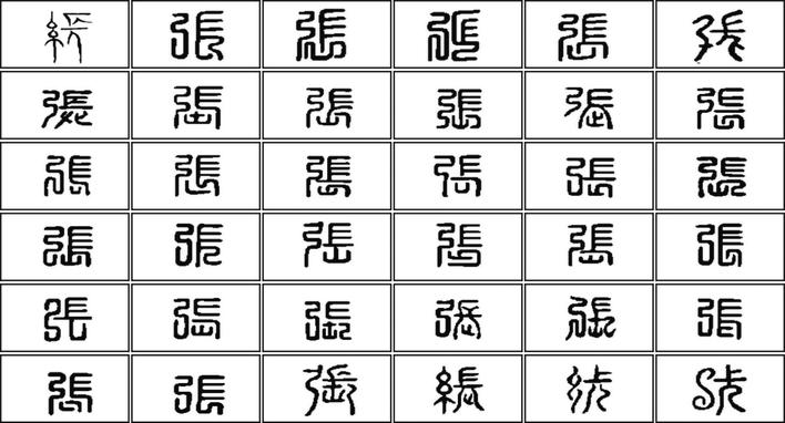 “张”,繁体为“張”,小篆写作 ,形声字,从弓,长声。