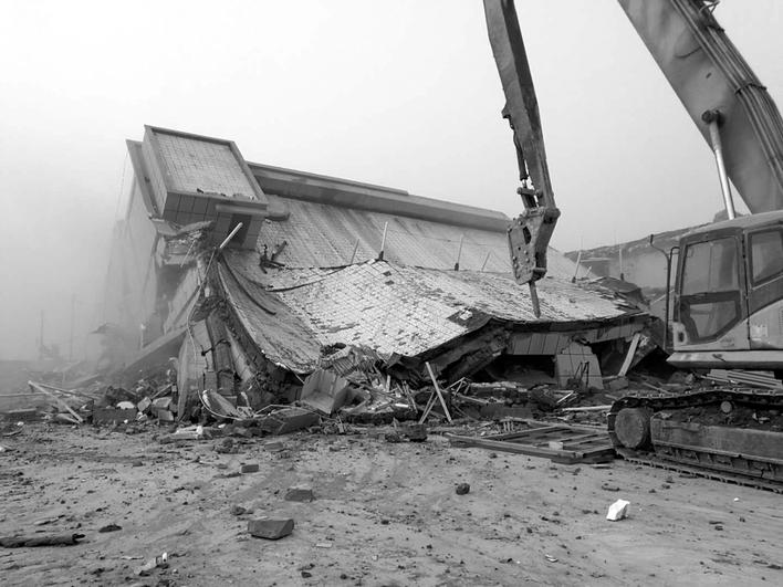听说要拆除这处违法建筑,周边不少村民前来观看。“业主这下估计要损失四五百万元,教训太惨痛了,违建要不得!”村民刘林叹息道。工作人员连续奋战到16时,这幢违建楼房轰然倒塌(如图)。