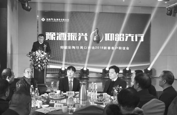 本报讯 1月16日上午,“振兴豫酒 仰韶先行”仰韶彩陶坊2018年周口新春客户联谊会在周口天明城锦江国际酒店举行。河南省酒业协会副秘书长、总工程师赵书民,仰韶营销公司总经理卫凯及周口各县市区500余名经销商代表参加了此次联谊会。