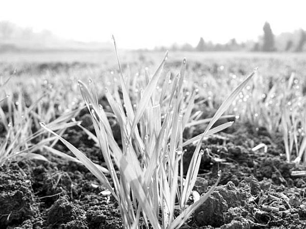 曾记否,今年的那个秋,真的是秋雨绵绵,成熟了的庄稼泡在地里,到了种麦子的季节,老天就是不开眼,犁不了地,种不上麦子。农谚说,秋分早,霜降迟,寒露耩麦正当时。过了霜降,天气才转晴,麦子比往年晚了将近一个月。我见有一家的麦子没有犁地就播了下去。一个月呀,差不多就是麦子一辈子的八分之一,相当于人的童年时期。后来,又遇到了干旱,只有零星几家人在地里浇灌。今年的麦苗如不足月的胎儿,孱弱得让人心碎。