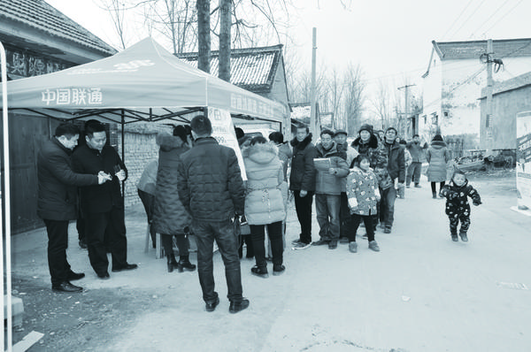 为尽快让周口籍农民工享受到联通公司推出的优惠政策,解决大家语音通话、视频聊天、娱乐等上网流量不足问题,结合农民工的实际情况,周口联通公司勇担社会责任、坚定扶贫决心、狠抓工作落实,及时成立了11个工作组,在各县(市、区)宣传部门的大力支持下,积极协助各县(市、区)联通分公司和各乡镇支局,组成上百个宣传小组,深入各乡镇村,为春节期间返乡的农民工免费赠送腾讯大王卡,用实际行动践行社会责任担当。