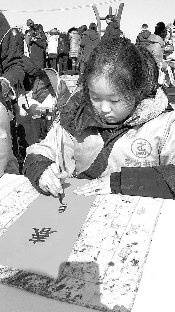 10岁的“小书法家”王米拉年龄虽小,但书法功底不差,写起春联来有模有样。“今天虽然很冷,但看到我写的春联被叔叔阿姨爷爷奶奶拿回家,心里别提多高兴了!”王米拉说。