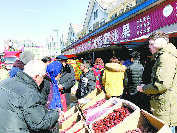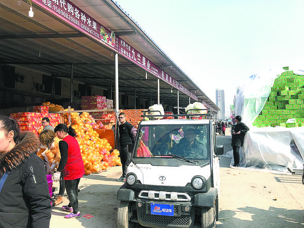 在水果批发区,各个摊位前的水果堆积如山。专程从商水县驱车前来置办年货的朱先生说:“我平时上班比较忙,跟父母聚在一起的时间也不多。该过年了,我想给父母买一些好的水果,为他们置办些年货。”