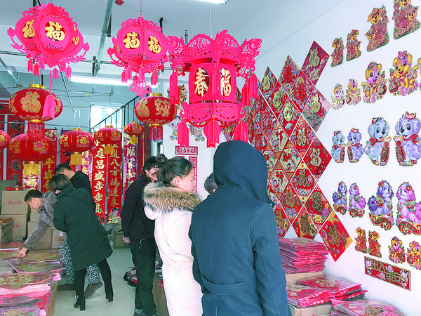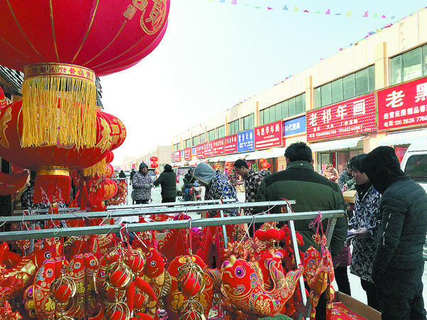 近日,华耀城A区精品市场内出现了一条“红街”,因为这条街上的门店卖的是对联、窗花、红烛等红色的商品。“批发对联就年前一个月的好生意,这几天忙不过来,家里的亲戚都来帮忙了!”经营对联批发生意的李阳说。他的店里挂着各式各样的对联、年画(图二),其中一些带有小狗元素的装饰品销量特别好。