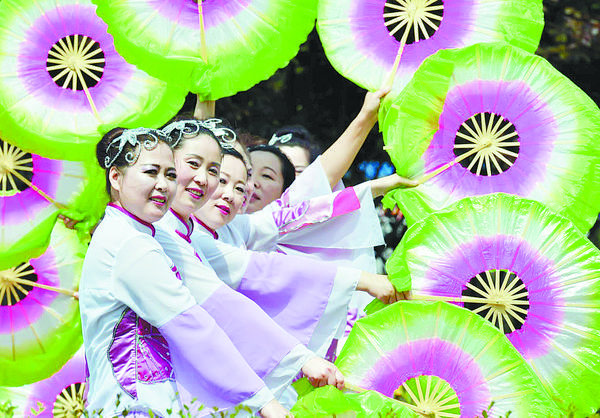 老人退休后,因儿孙不在身边,孤寂往往是他们的一种生活常态,而孤寂又成为影响他们健康的重要因素,于是,丰富多彩的广场舞成为退休老人的最爱。图为退休大妈们表演扇子舞。 通讯员 杨春黎 摄
