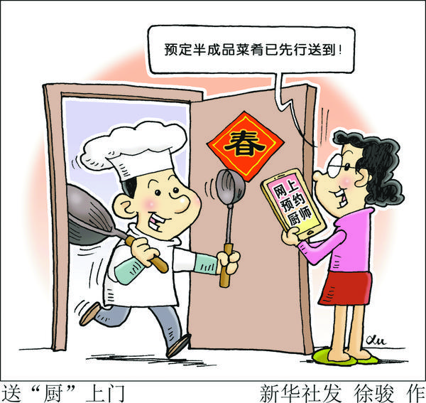 随着互联网和物流业的发展,如今,回家吃年夜饭成为越来越多人的选择。而这一次,跟着我们回家的,不仅有现成的美味,还有高品质的服务。除了更高品质的食材,人们还要更贴心的服务,“厨师到家”模式成为很多人的选择。从“腊月忙”,到酒店年夜饭,再到网上预定半成品菜肴或大厨上门,年夜饭的方式越来越多元。新华社发