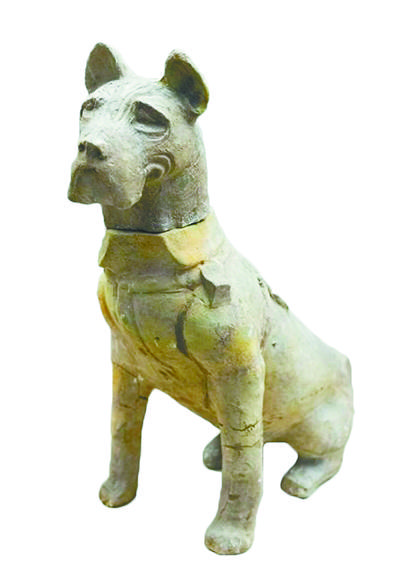 目前国内考古发现,所见较为奇特的汉代随葬陶狗,1972年出土于成都天回山东汉崖墓,现藏于四川博物院。该陶狗高约74厘米,嘴角下垂成囊状,前腿直立,后腿蜷伏,耳朵高耸,尾巴短小。这只陶狗十分写实,看上去威风凛凛,许多参观者都惊呼:“这不是国际热门名犬——卡斯罗犬吗?”事实上,学界普遍认为这只陶狗应该取材于重庆犬,这种狗驯养于川渝地区,虽然算不上世界名犬,但其早在汉代就已出现,真是非常古老的犬种。