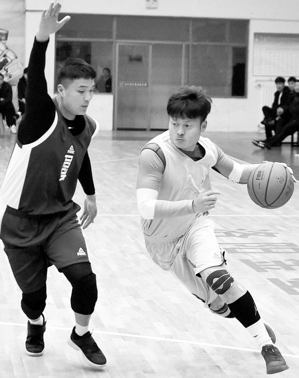 当日,洛阳队球员徐铁锁(右)在比赛中带球突破。新华社 发